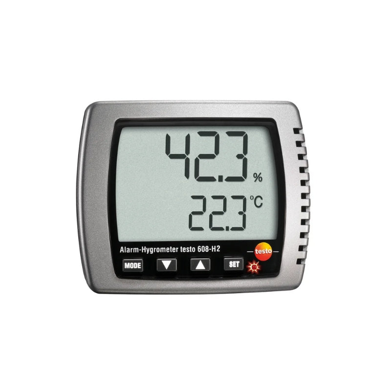 The Testo 608-H2 Alarm Hygrometer (0560 6082) is a high-precision instrument for continuous monitoring of temperature, humidity, and dew point in indoor environments. Designed for professionals who need accurate readings without data logging, it provides a clear real-time display and visual LED alarm that alerts when threshold limits are exceeded.