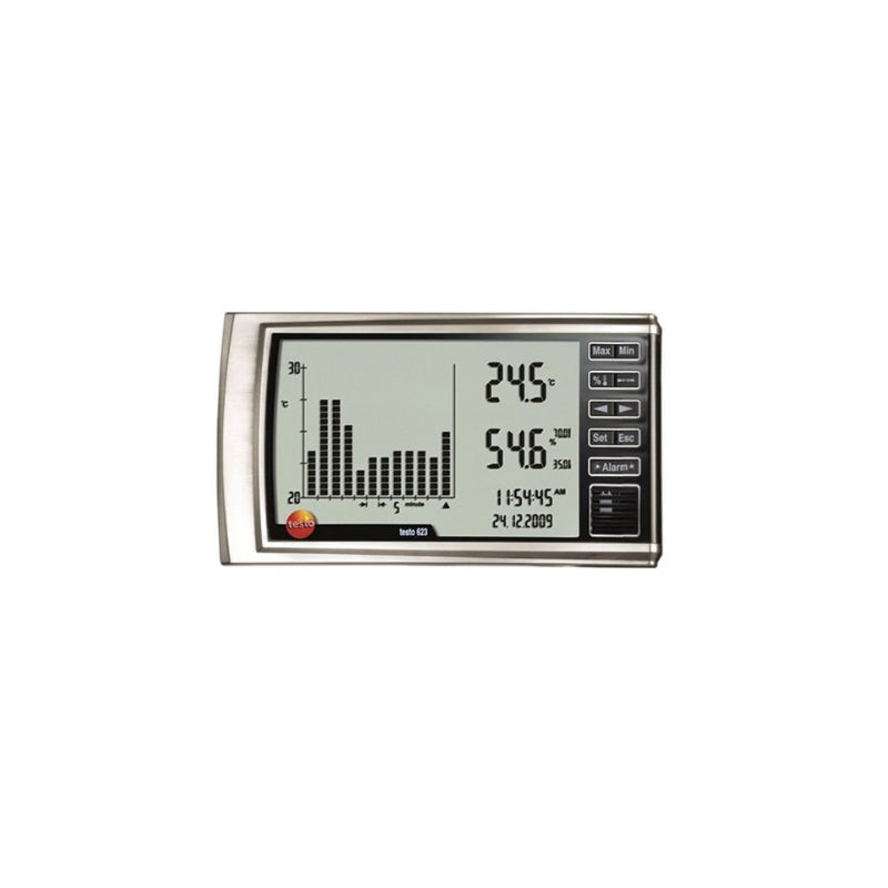 The Testo 623 Ambient Climate Meter (0560 6230) is an elegantly designed, high-precision instrument for monitoring temperature and humidity in offices, living spaces, and commercial environments. With its sleek appearance and reliable performance, it combines professional measurement technology with modern design.